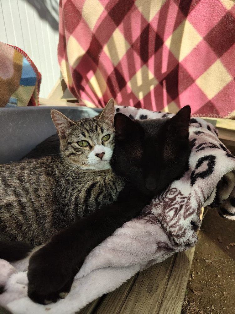 Donna una de los 5 hermanos rescatados, cada vez más sociable y cariñosa. Está esperando una oportunidad de encontrar un hogar definitivo, le encanta estar en compañía de otros gatos.
